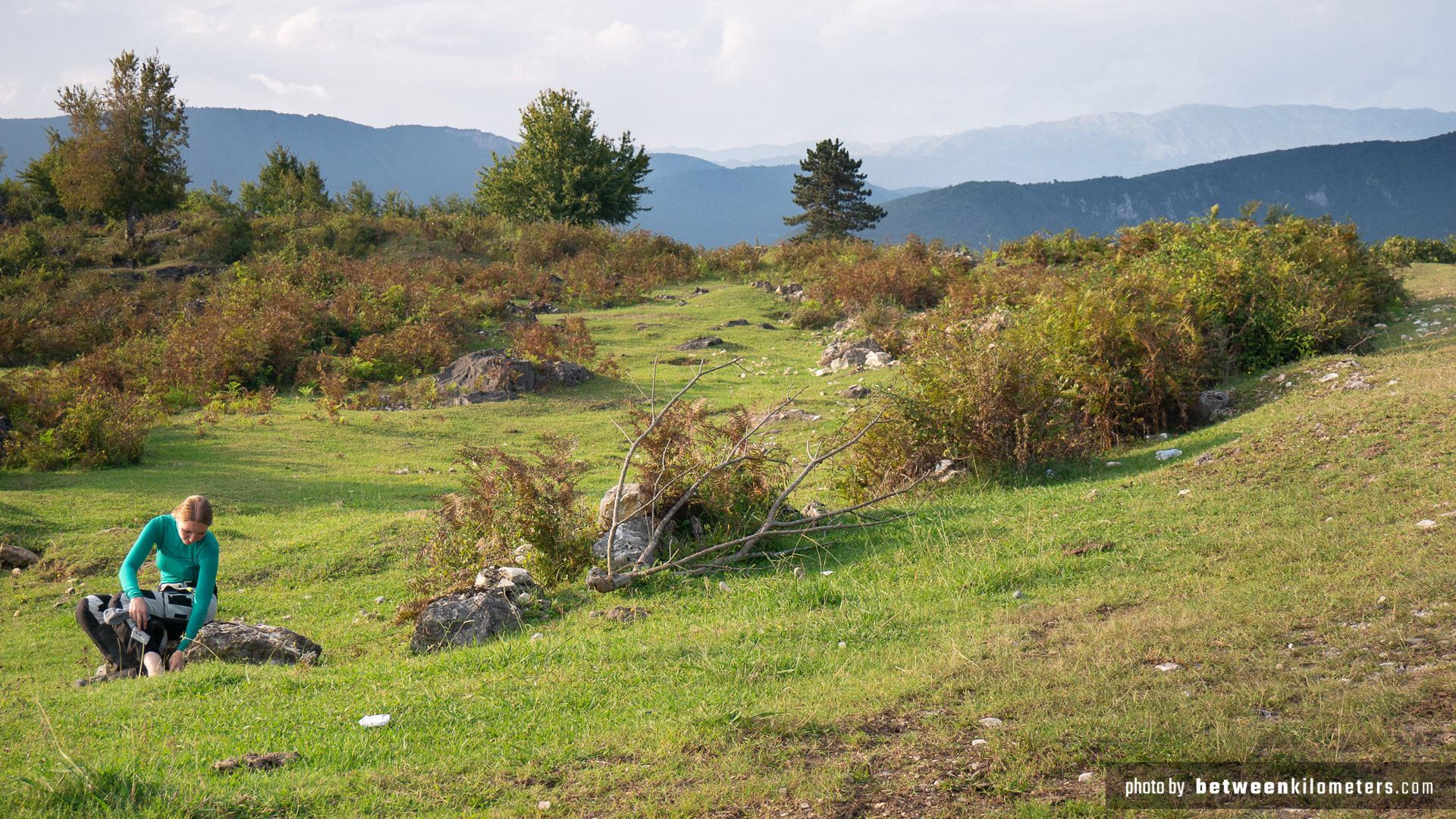Tego dnia jechaliśmy górską drogą z Uszguli do Kutaisi. Właściwie na niektórych odcinkach ciężko było nazwać ją drogą, ponieważ bardziej przypominała kamienistą ścieżkę dla pieszych. Olga musiała często schodzić z motocykla, abym mógł pokonać bardziej wyboiste miejsca samodzielnie.
