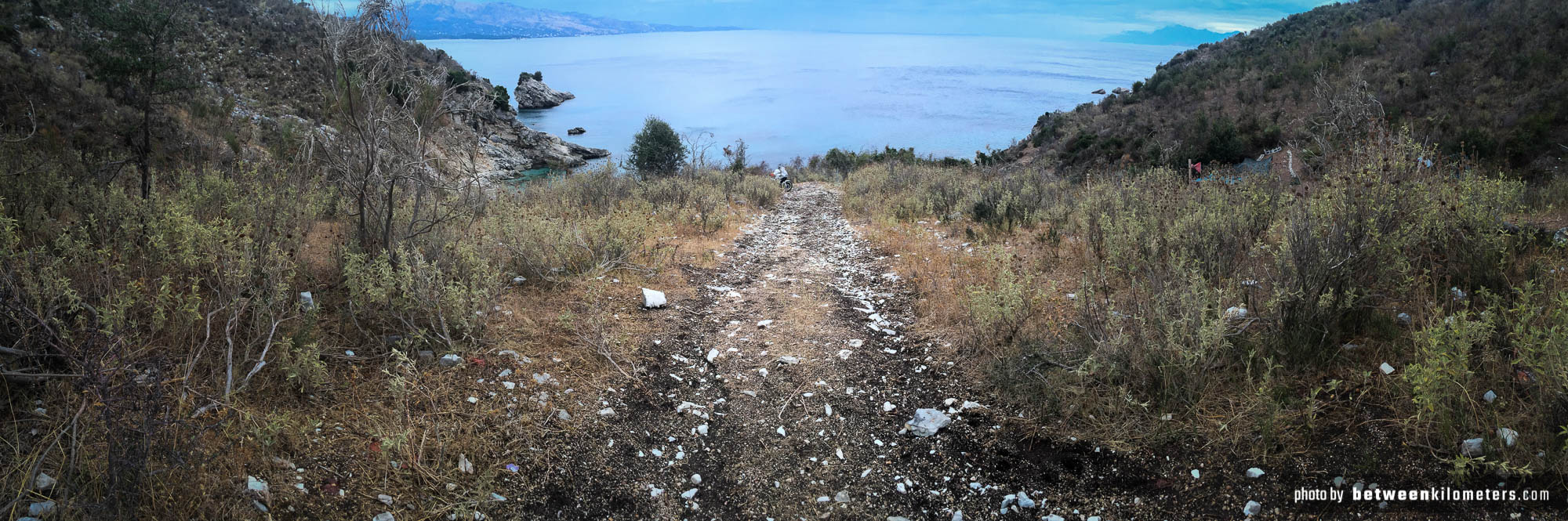 Ten odcinek nas tak wykończył, że kufry wnosiliśmy kilkadziesiąt minut. Krótkie odcinki i dużo odpoczywania. W trakcie wypiliśmy całą wodę, którą mieliśmy ze sobą i poznaliśmy bardzo ciekawego kolesia, do którego należał okoliczny dziki kemping. Marjol oddał nam nam swoją butelkę wody i opowiedział o tym co tu robi. Okazało się, że jest archeologiem i pod wodą znajduje różne, ciekawe rzeczy. Więcej można poczytać na stronie: The Albanian Center for Marine Research.